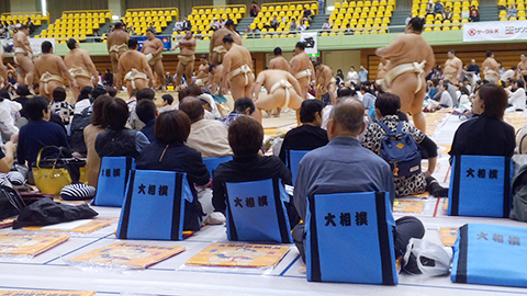 公開稽古は巡業に出ているすべての力士が原則参加します。ただケガや体調により参加しない場合もあります。